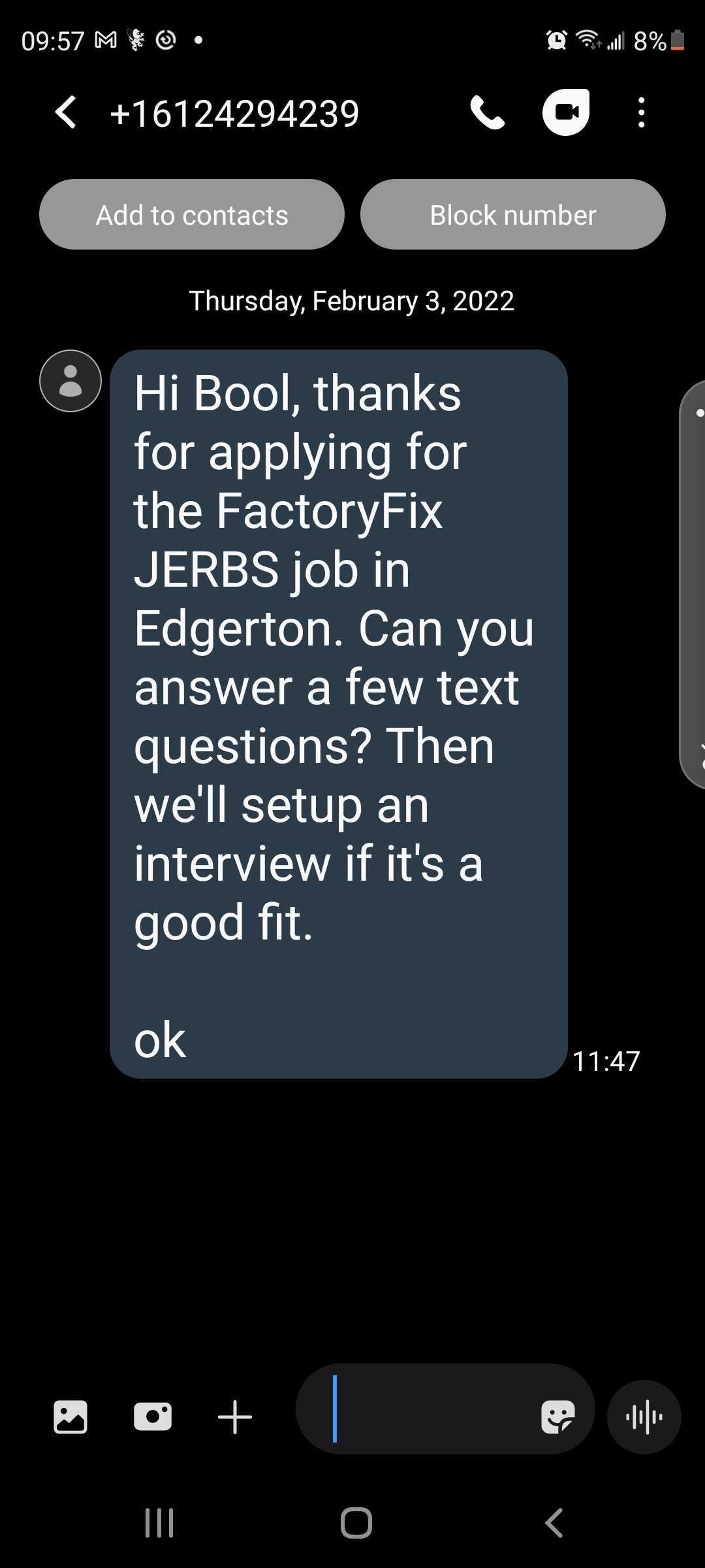 FactoryFix text message screening